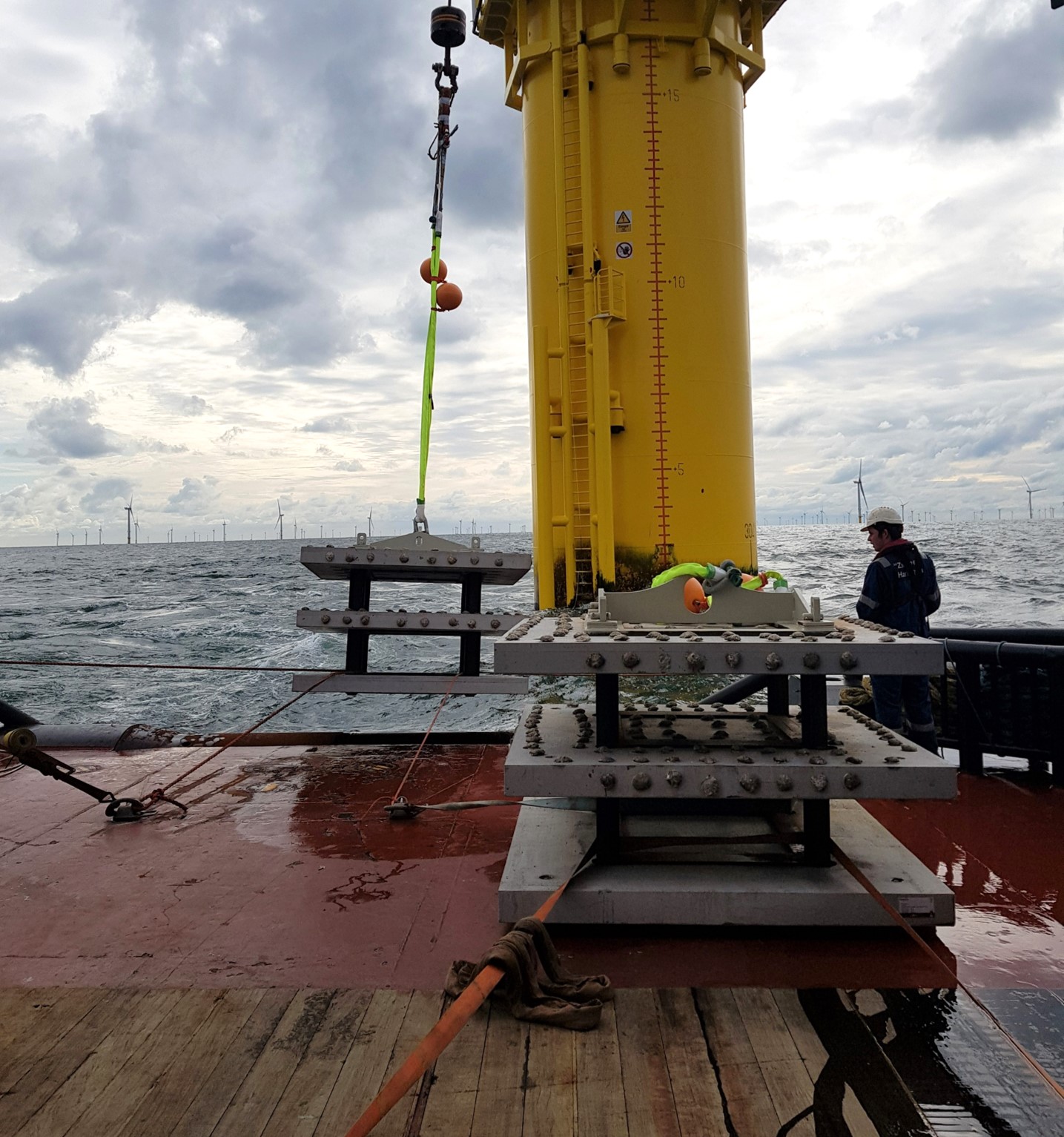 As part of eco-friendly scour protection, these oyster tables were placed in offshore wind farm Borssele V in 2020, an innovation test location in support of the Dutch energy transition. 4 oyster tables were outplaced at two monopile locations, containing 000 oysters in total.
