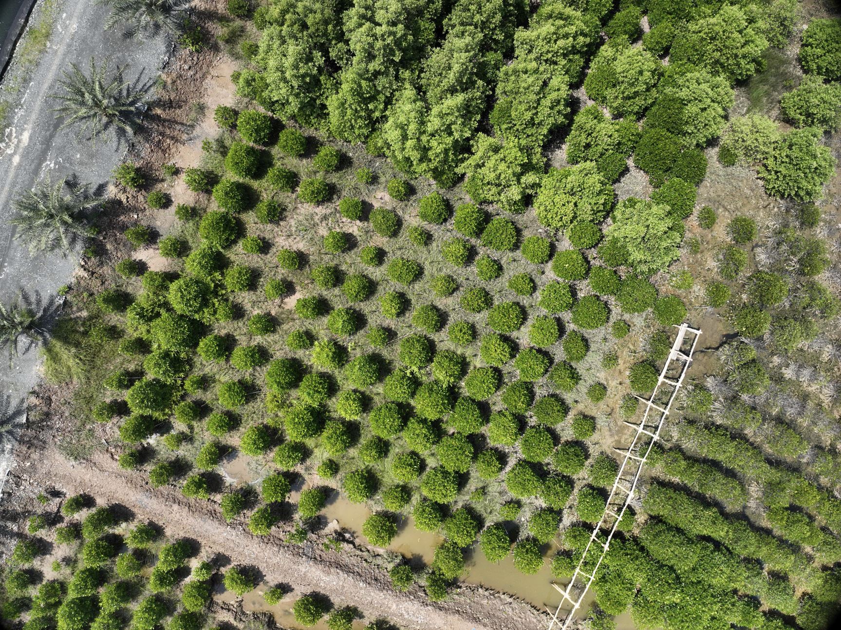 In 2022, we began piloting this approach in Vietnam, testing different mangrove species and planting configurations to assess their ability to thrive in aquaculture conditions. These pilot systems are designed to mimic natural processes: mangroves absorb nutrients, stabilize sediments, and contribute to carbon sequestration, while coexisting with productive aquaculture ponds.
